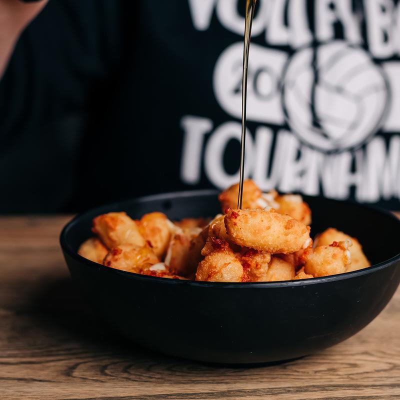 Honey drizzled cheese curds. Served with spicy ketchup.